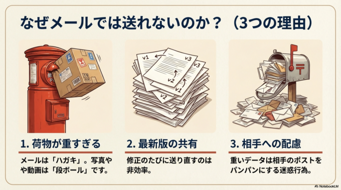 でも、大丈夫です。水戸市やひたちなか市の事業者さんからも、この相談は本当に多くいただきます。今日は、誰でも使える「インターネット上のロッカー」を使った渡し方を、専門用語なしでお伝えしますね。